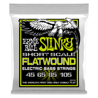 Ernie Ball Slinky Cobalt Flatwound Short Scale Bass Strings combine the smooth feel of traditional flatwounds and the power of Cobalt. Featuring a Cobalt ribbon wrap, Cobalt underwraps and optimal hex-core to wrap ratio, the new Flatwound Short Scale bass strings are the first flat that actually feels like a flat and sounds like a round. Designed to fit 30" to 30.5" scale basses, the string length is 48" with a taper at 32.5". Gauges: .045, .065, .085, .105